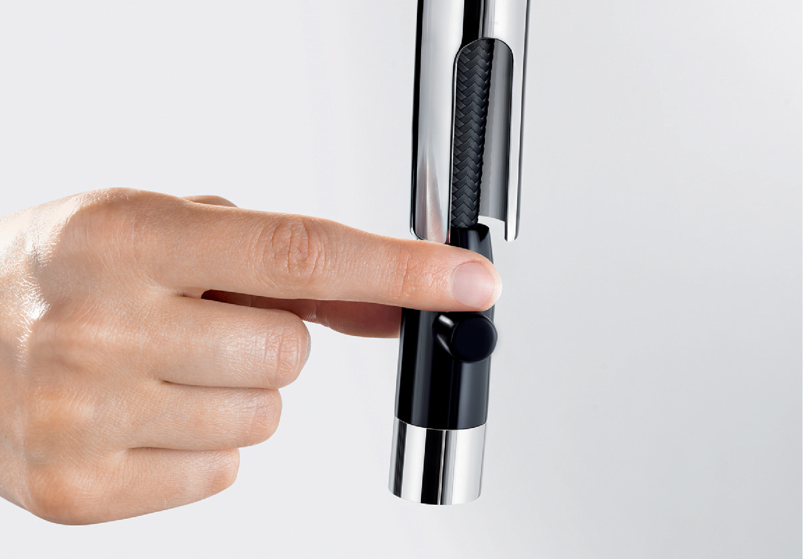 - Скрытый выдвигающийся шланг с направляющим выступом на обратной стороне излива