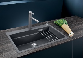 Серия больших трехуровневых кухонных моек с одной чашей без крыла из материалов Silgranit PuraDur, нержавеющей стали и